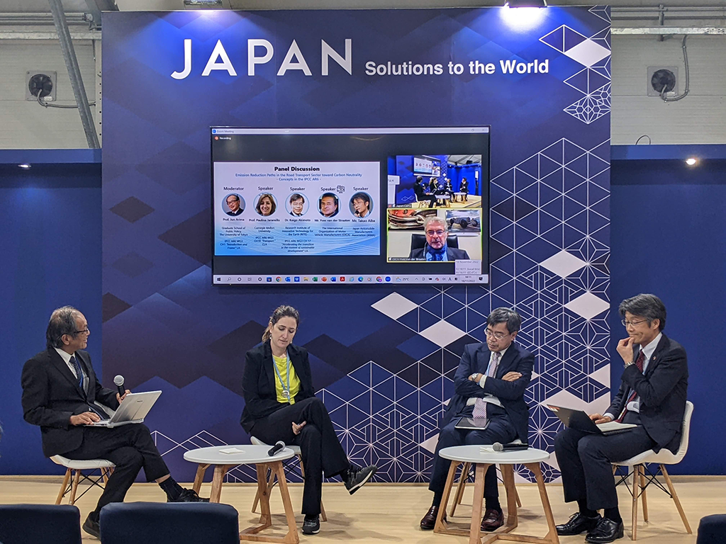 2022年11月18日、エジプトのシャルム・エル・シェイクにて開催されたCOP27会場に設置されたジャパンパビリオンにて、「カーボンニュートラルに向けた道路交通セクターの排出削減パスについて~IPCC第6次評価報告書における考え方~」と題した一般社団法人日本自動車工業会主催のサイドイベントを開催致しました。