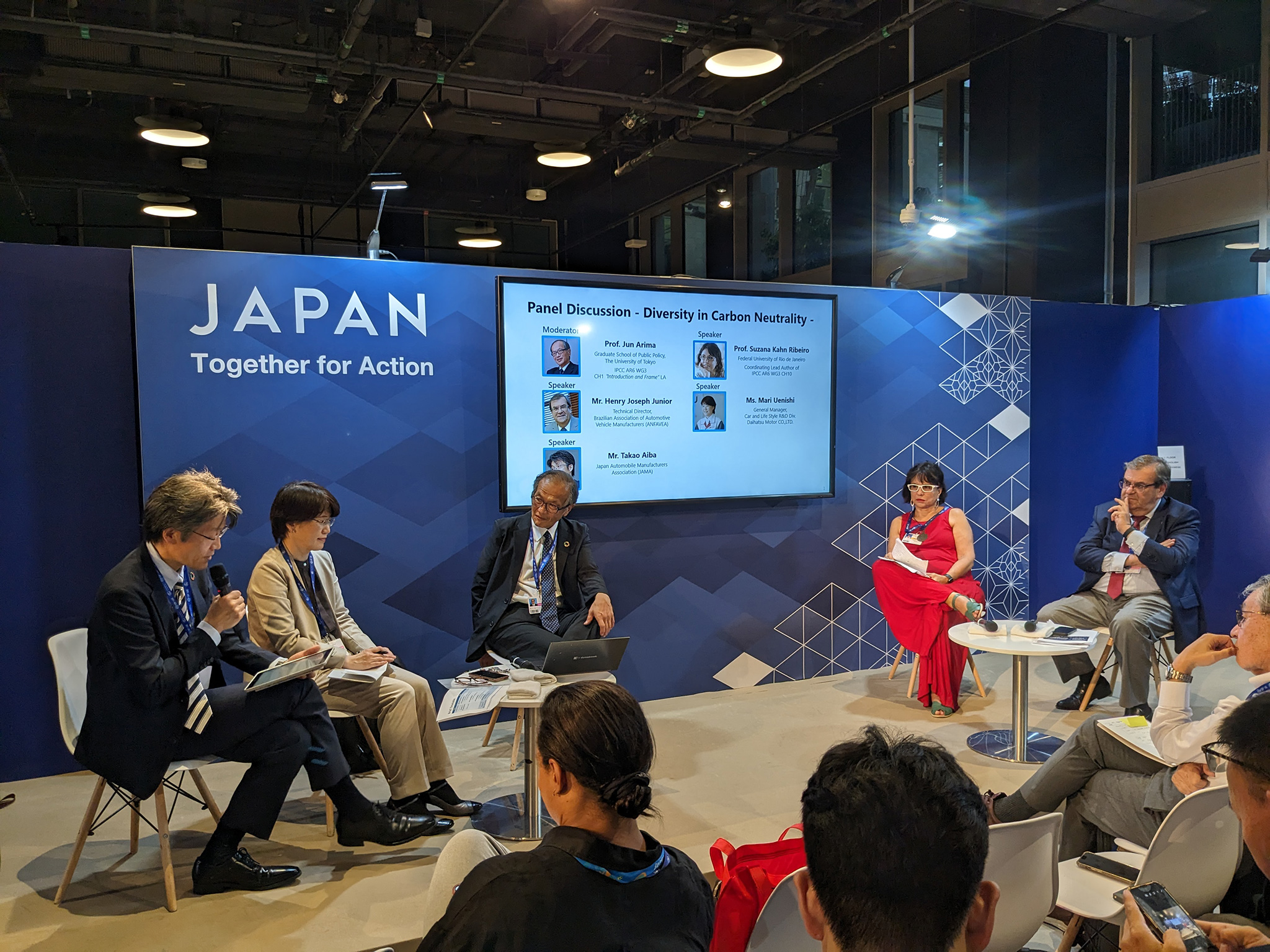 世界の科学的知見の権威であるIPCCの最新報告書の主要執筆者の方々に加え、ブラジル自動車工業会を代表する方や、ダイハツ工業の専門家を登壇者としてお迎えし、気候変動に関する最新の科学的知見・地域のバイオマス資源活用の側面から、自動車のライフサイクル全体をカバーする「つくる」・「はこぶ」・「つかう」の領域における多様なソリューションの可能性や、コベネフィット等についてパネルディスカッションを行いました。