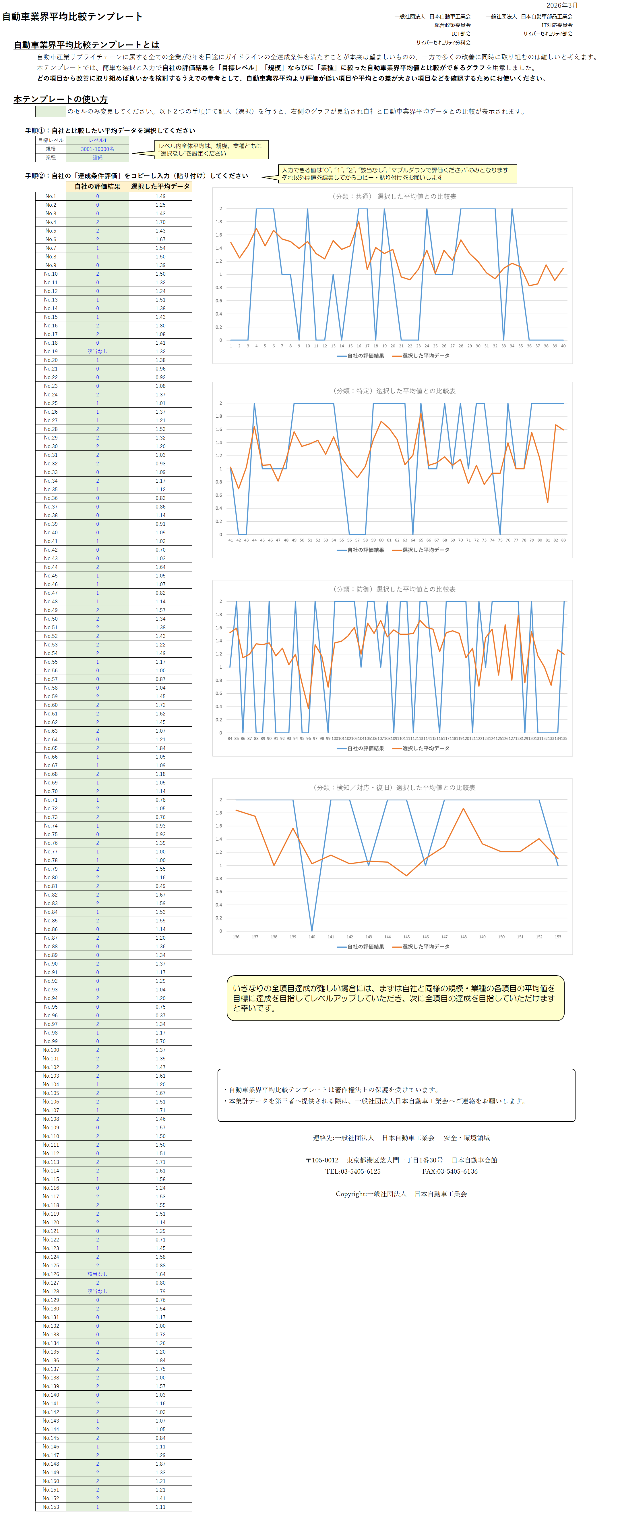 ※自動車業界平均比較テンプレート(Excel)は、評価結果をご提出いただいた各社へ送付済みです。